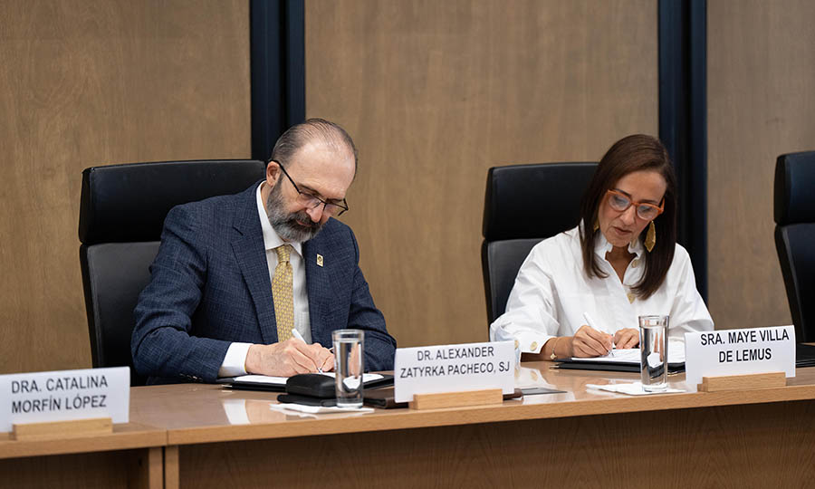 La ceremonia protocolar de la firma del convenio estuvo encabezada por Alexander Zatyrka, SJ, rector del ITESO, y Maye Villa de Lemus, presidenta del DIF Jalisco. Por parte de la universidad también se contó con la presencia de Catalina Morfín, titular de la Dirección General Académica, y Rebeca Acevez Muñoz, directora del Centro Interdisciplinario para la Formación y la Vinculación Social (Cifovis).